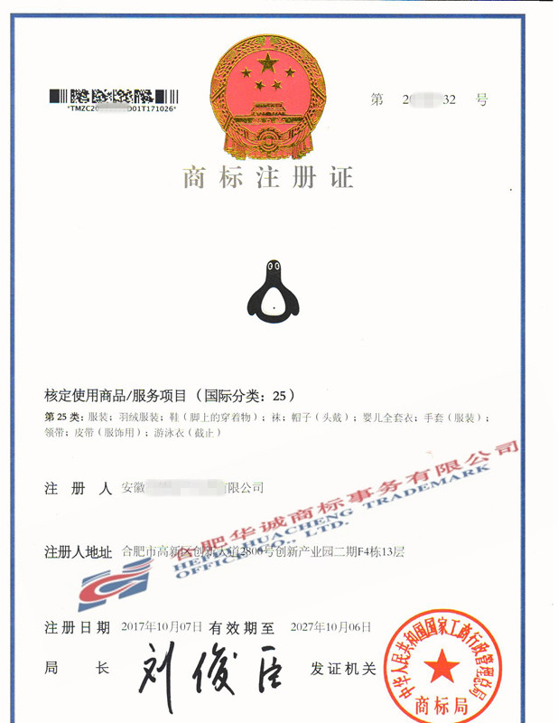 您委托我所代理商标注册申请,名称为“图形” 25类商标注册证已下达。