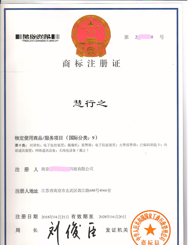 您委托我所代理商标注册申请,名称为“惠行之”9类商标注册证已下达。